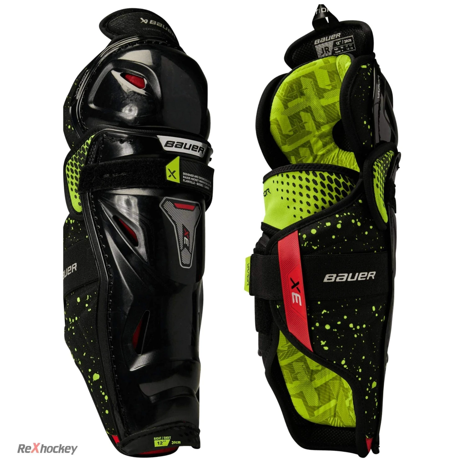 Bauer Vapor 3X benskinnerne giver den perfekte balance mellem beskyttelse, komfort og fleksibilitet for den konkurrerende spiller. Den dybtsiddende Vapor-knæhætte kombineres med den lette X-Lite Shield skinnebenshætte for at konturere den naturlige form af skinnebenet. Skinnebensbeskytteren holdes sikkert på plads med den øverste komfortlåsestrop og en bred lægrem, så du kan lege med selvtillid. Den aftagelige komfortfor er blød og behagelig med sublimeret THERMOMAX-for, der holder dig frisk hele spillet.