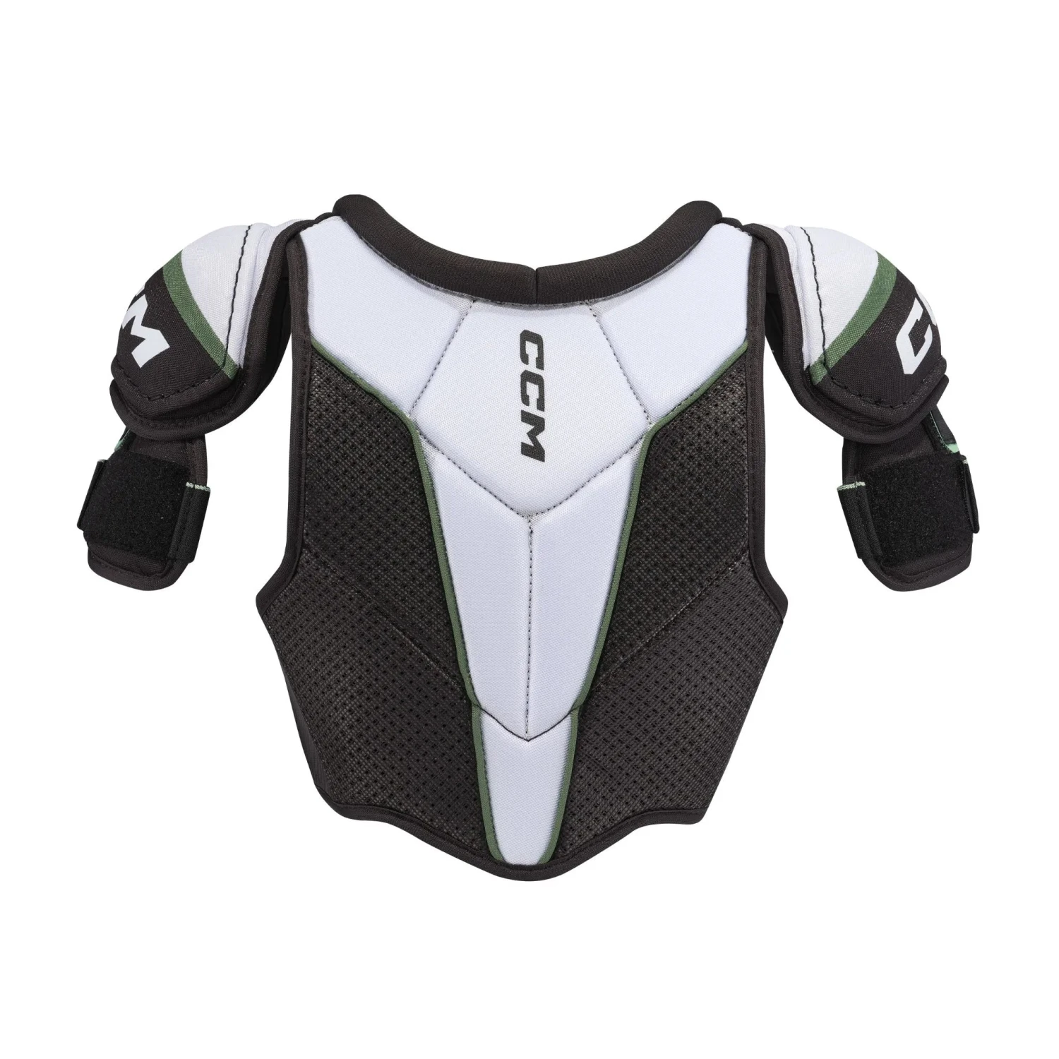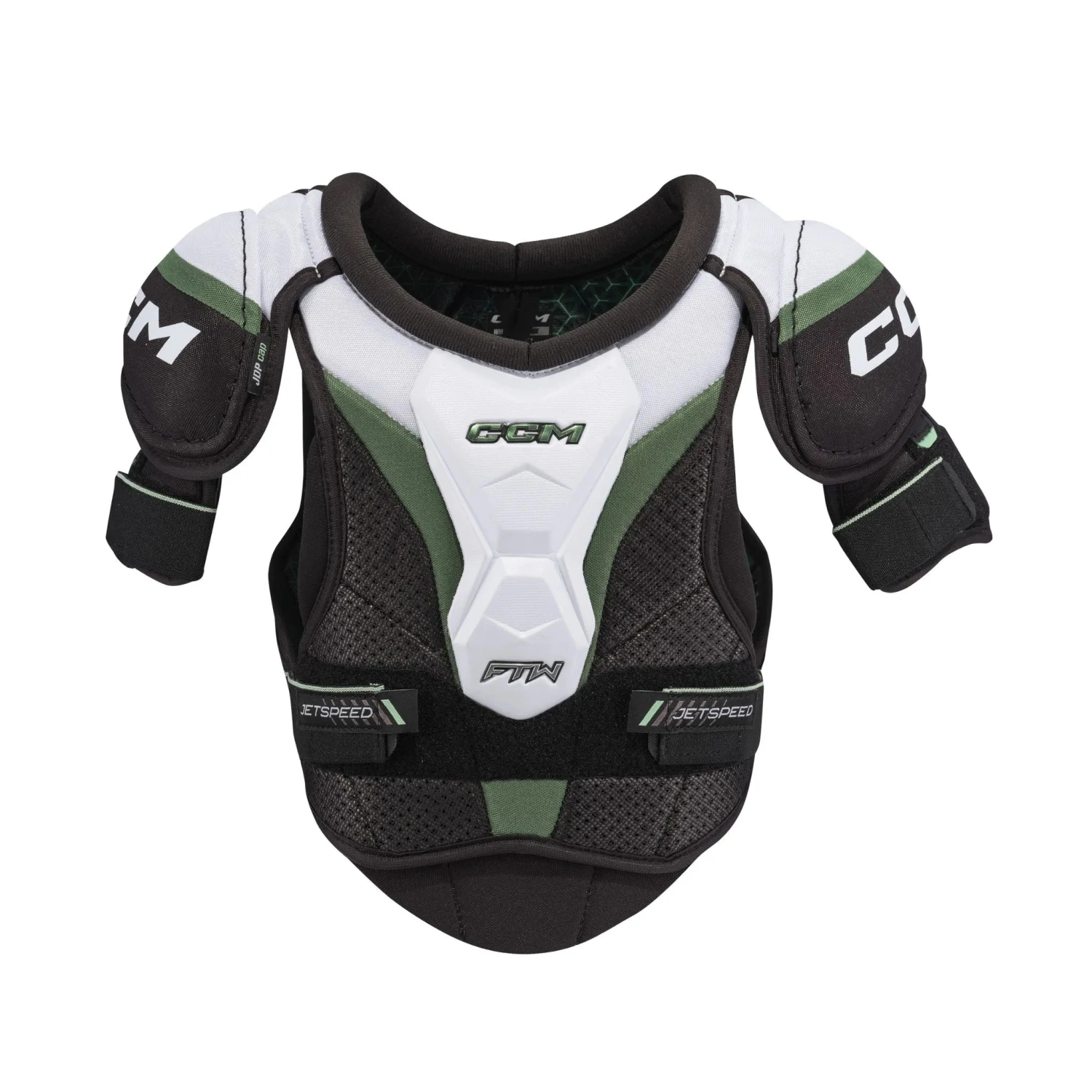 CCM JETSPEED FTW Skulderpanser i Junior tilbyder komfort og beskyttelse skræddersyet til unge pigers skiftende silhuetter på ethvert niveau. CCMs lette design og anatomiske beskyttelse, tilbyder overlegen komfort, mens de reducerer uønsket pres og tilpasser sig spillerens form, når hun bevæger sig.