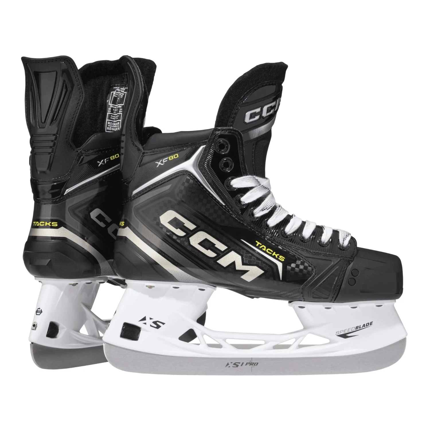 CCM TACKS XF80 skøjterne har CCM’s “one-piece” støvlekonstruktion for mere direkte energioverførsel og en tættere pasform, så du får mest muligt ud af hvert skøjtetag. Udstyret med de nye og forbedrede XS PRO rustfri stålklinger med ekstra højde og tykkelse, giver disse skøjter dig den ultimative fordel over din modstander. Flex Tendon 3.0 sikrer et bredt bevægelsesområde og forbedret smidighed, kombineret med forbedret ankelpolstring for ekstra komfort.